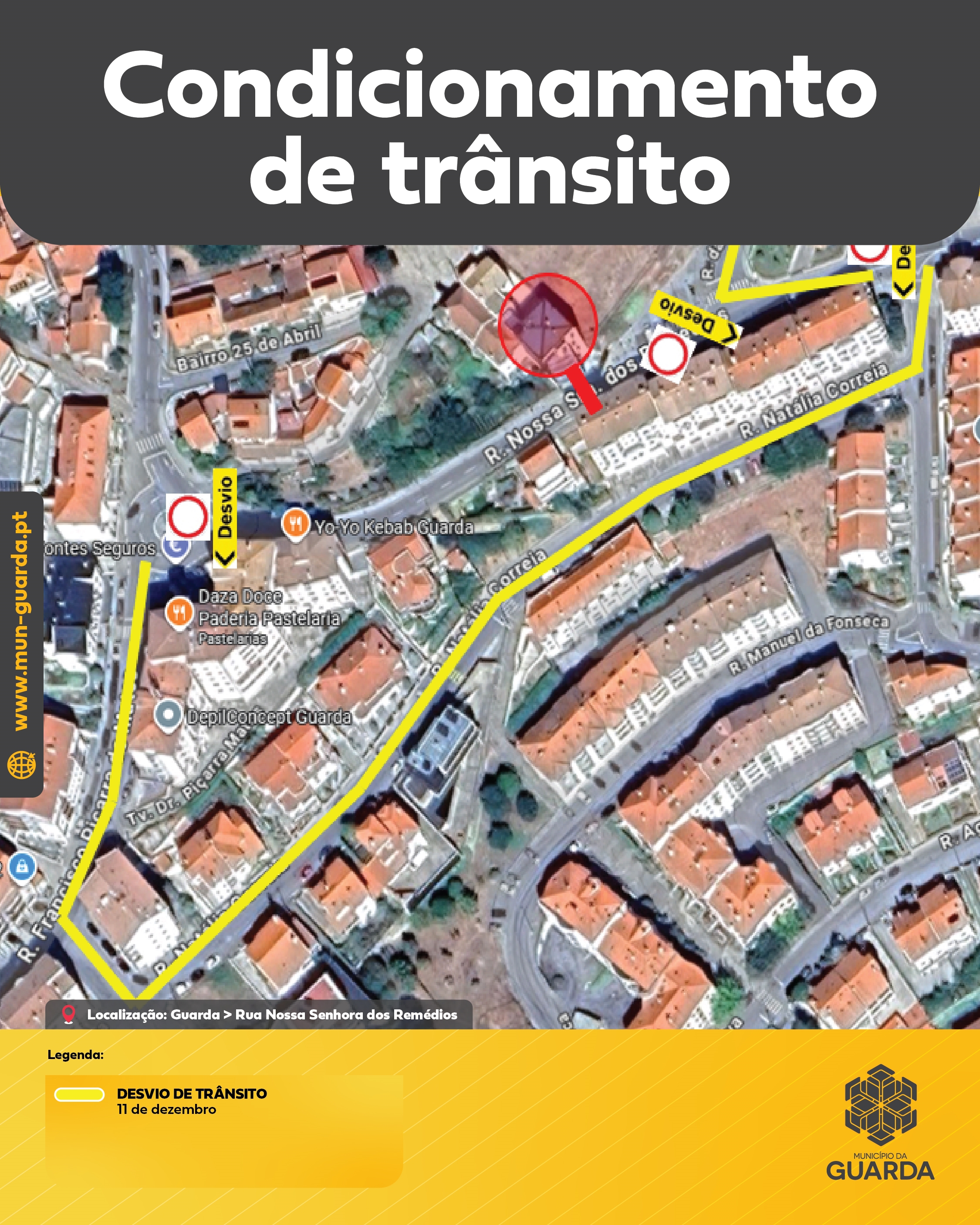 Aviso | Corte de trânsito – 11 de dezembro | Rua Nossa Senhora dos Remédios [Guarda]