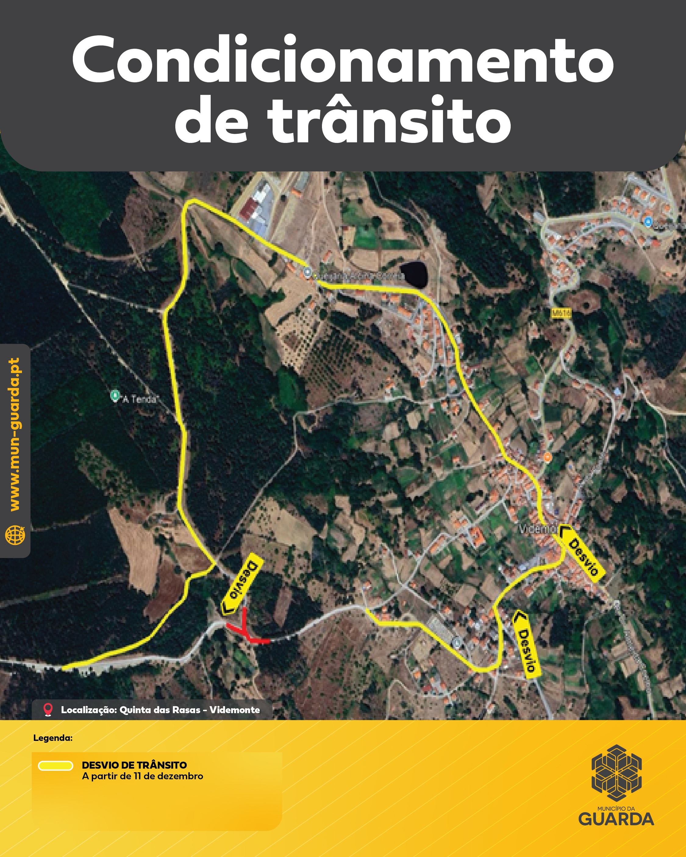 Aviso | Desvio de trânsito – a partir de 11 de dezembro |Percurso entre Videmonte e Quinta da Taberna