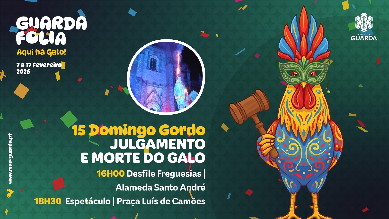 O espetáculo, a iniciar pelas 18h30 de Domingo Gordo, dia 15 de fevereiro, na Praça Luís de Camões, após o Desfile das Freguesias, terá como ponto de partida um grande 'show-trial' onde será decidido o destino do Galo, numa mistura de justiça, manipulação e intriga. No centro estará o galináceo concebido pelo artista plástico Rui Miragaia. O espetáculo terá texto de Pedro Dias de Almeida e direção artística de Simão Barros.